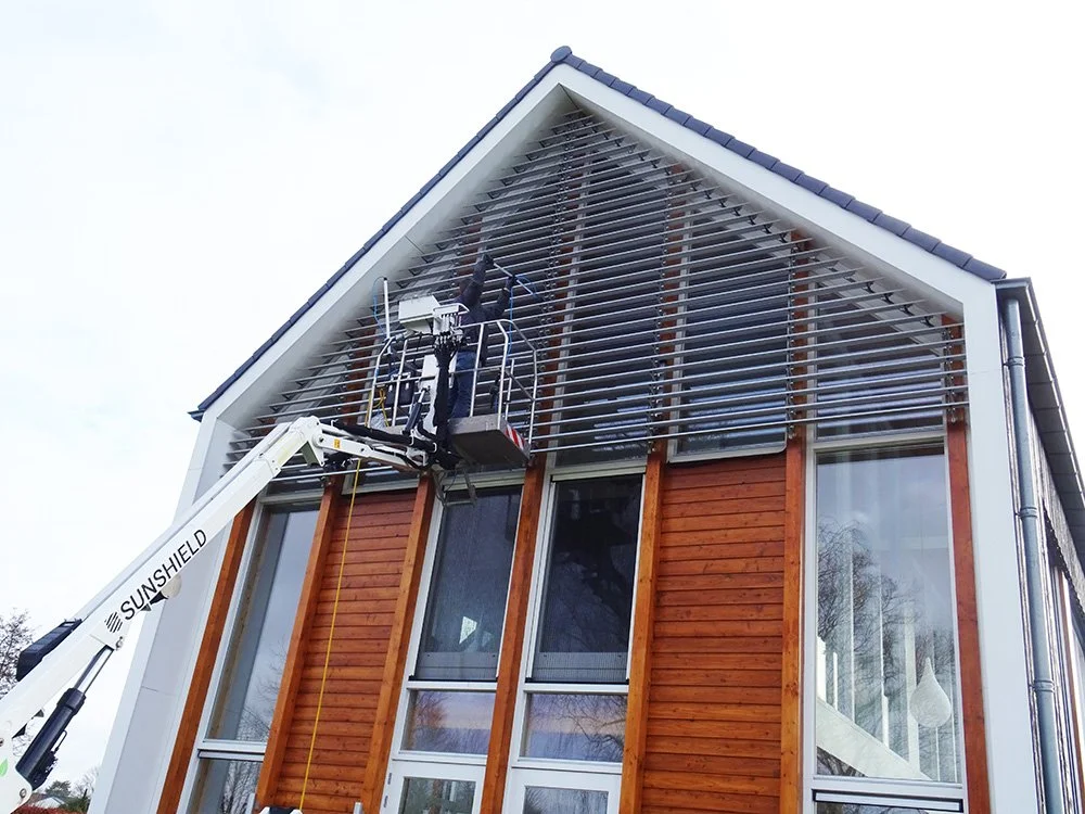 The maintenance service starts with an inspection of your Sunshield systems. Everything is checked and, where necessary, small parts are immediately replaced and relevant components are lubricated. For repairs that cannot be rectified immediately, a new visit will be scheduled. In that case, call-out costs, travel hours, working hours, climbing equipment and materials used are taken care of by Sunshield.